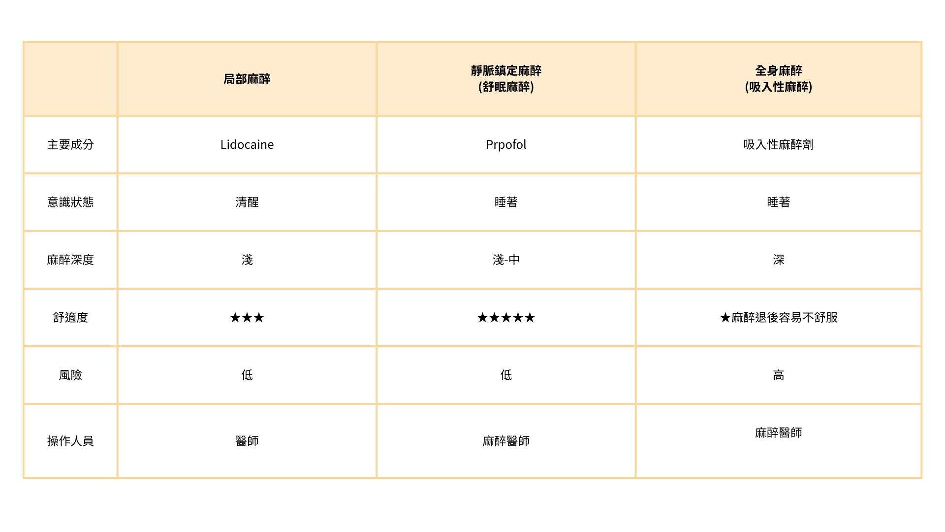 台北醫美麻醉安全指南|專業麻醉科醫師全程守護 / 最新消息 / 作者: timebeauty 許多人考慮醫美或整形手術時,最在意的除了效果,就是「麻醉安不安全」。麻醉專科醫師就像手術中的守護傘,能幫助醫美求美者舒適、減少疼痛,同時維持安全狀態。以下帶大家快速了解醫美常見的麻醉方式、安全規範,以及為什麼選擇有專科麻醉醫師進駐的診所更安心。 醫美常見麻醉方式 局部麻醉 藉由藥物注射在特定區域,暫時阻斷該部位的神經傳導,讓患者在手術或治療過程中不會感覺疼痛,但仍保持清醒、意識正常。特點:作用範圍小:只在手術或治療的局部區域生效。患者清醒:不會影響大腦中樞神經,所以患者能保持對話、呼吸功能正常。藥效時間有限:通常可持續 30 分鐘~數小時,依藥物種類與劑量不同。常見使用醫美手術:雙眼皮手術、小範圍抽脂、眼袋手術。 靜脈鎮定麻醉 透過靜脈注射鎮靜藥物,讓患者進入類似「淺眠」的狀態,同時維持自主呼吸與基本反應的一種麻醉方式。 特點 患者意識狀態:大多數人會像睡著,過程中幾乎沒有記憶,但並非完全喪失意識。 維持自主呼吸:與全身麻醉不同,通常不需插管或呼吸器。 搭配局部麻醉:常與局部麻醉合併使用,既能鎮痛又能降低緊張。 專業監控:需麻醉科醫師全程監測與調控。恢復快:藥效退得比全身麻醉快,術後可較快清醒。 常見使用醫美手術:眼袋手術、抽脂手術、抽脂手術、隆乳手術等。 全身麻醉(吸入性麻醉) 透過靜脈或吸入藥物,使患者進入可完全控制的無意識狀態,暫時失去知覺、疼痛感、肌肉張力與記憶,同時需要由麻醉科醫師監測呼吸、循環與生命徵象的一種麻醉方式。特點:完全失去意識:病人無痛感,對手術過程毫無記憶。需協助呼吸:多數情況需要插管或使用呼吸器。適合長時間手術:藥效持續時間可精準控制。專業監控:需麻醉科醫師全程監測與調控。常見使用醫美手術:1. 醫院大型手術2. 整形外科複雜手術 麻醉方式比較表 不同的醫美手術,有不一樣的麻醉方式建議,應由麻醉科醫師評估後提出,並透過術前體檢、用藥評估等評估麻醉風險。 台灣醫美麻醉的安全規範 衛生福利部於107年6月8日預告「特定醫療技術檢查檢驗醫療儀器施行或使用管理辦法修正草案」(簡稱特管辦法),明訂削骨、中臉部與臉頸部拉皮、鼻整形、義乳植入之乳房整形、脂肪抽取量達1500cc或總抽出量達5000cc之抽脂、腹部整形、全身拉皮手術等8類風險性高之美容醫學手術的醫師資格,且全身麻醉或是深度鎮靜之靜脈注射麻醉,則須由麻醉科醫師執行,如為中度或輕度鎮靜麻醉,則須有除手術醫師外之另一位受過麻醉鎮定相關訓練之醫師在場,以監測手術過程之生理變化。 總結來說,在台灣醫美麻醉需符合以下安全要求:手術房安全規格:需有監測設備(心電圖、血氧濃度監測、血壓監測)。專業醫師操作:全身麻醉、靜脈麻醉必須由麻醉專科醫師操作。緊急應變設備:氧氣、插管設備、急救藥品必須齊備。術前評估:包括病史、藥物過敏、身體狀態(如心臟病、糖尿病)都需進行術前評估。 當代美學之麻醉安全守護 |專責專任麻醉專科醫師駐診 |手術前麻醉風險評估-血檢、病史、藥物史、身高、體重等 |術前鐘後麻醉醫師全程監控 |麻醉劑量精準給予 |手術室安全規格與設備完善 麻醉專科 廖文瑋醫師|當代美學診所特約麻醉科醫師團隊 高風險手術麻醉安全守護者 對於精準麻醉已有多年經驗的廖文瑋醫師,每一台手術,廖文瑋醫師秉持初心堅持守護求美者的安全,客製化1對1評估麻醉風險以及麻醉用藥安全,甚至術後止痛,廖醫師都要讓每位求美者,在舒適且安全的狀態下完成手術。對廖文瑋醫師來說,麻醉不是單純打針,是一套非常嚴謹的過程,密切全程監控生命徵象,確保手術順利進行,並讓病患術後安全甦醒、恢復身體功能,手術才算真正安全完成。 麻醉常見問題 Q1. 靜脈麻醉會不會很危險? 只要由麻醉科醫師操作,U依照體形與需求提供適合麻醉劑量,並持續監測生命徵象,安全性很高。危險多發生在非專業人員操作或設備不足的情況。 Q2. 高齡或有慢性病的人能做麻醉嗎? 需要經過嚴謹的術前評估(體檢、用藥史、過敏史、手術史等),由麻醉科醫師決定是否適合,以及應採用之麻醉方式。 Q3. 會不會在手術中突然醒來? 麻醉科醫師會持續監控藥物濃度,避免過淺或過深,所以不會突然清醒或感覺到疼痛的狀況發生。 Q4. 麻醉前注意事項 1. 飲食與禁食靜脈鎮靜麻醉/全身麻醉:通常需禁食禁水 8 小時,避免手術中嘔吐、嗆入導致吸入性肺炎。局部麻醉:一般不需特別禁食,但建議避免空腹或過飽。2. 藥物使用為避免手術中不必要的出血,手術後腫,活血食品及藥品請術前及術後1週停用,如:阿斯匹林、抗凝血藥、魚油、銀杏、維生素E、蜂王乳、Q10、膠原蛋白、人參、當歸、促進循環之中藥及各式補品。若有慢性病藥物請事先告知醫師,個別化評估。3. 身體狀況評估麻醉前會進行問診,包含:過去麻醉經驗、是否有過敏、慢性病、氣喘、心臟或肝腎功能問題。若有感冒、咳嗽、喉嚨痛,應事先告知,避免呼吸道併發症。4. 生活習慣吸菸、飲酒:建議手術前至少 2 週戒菸,酒精也要避免,因為會影響麻醉藥代謝與傷口癒合。5. 手術當天請勿化妝、擦指甲油,以便麻醉科醫師觀察血液循環與血氧偵測。隱形眼鏡、假牙、飾品需取下。穿著寬鬆衣