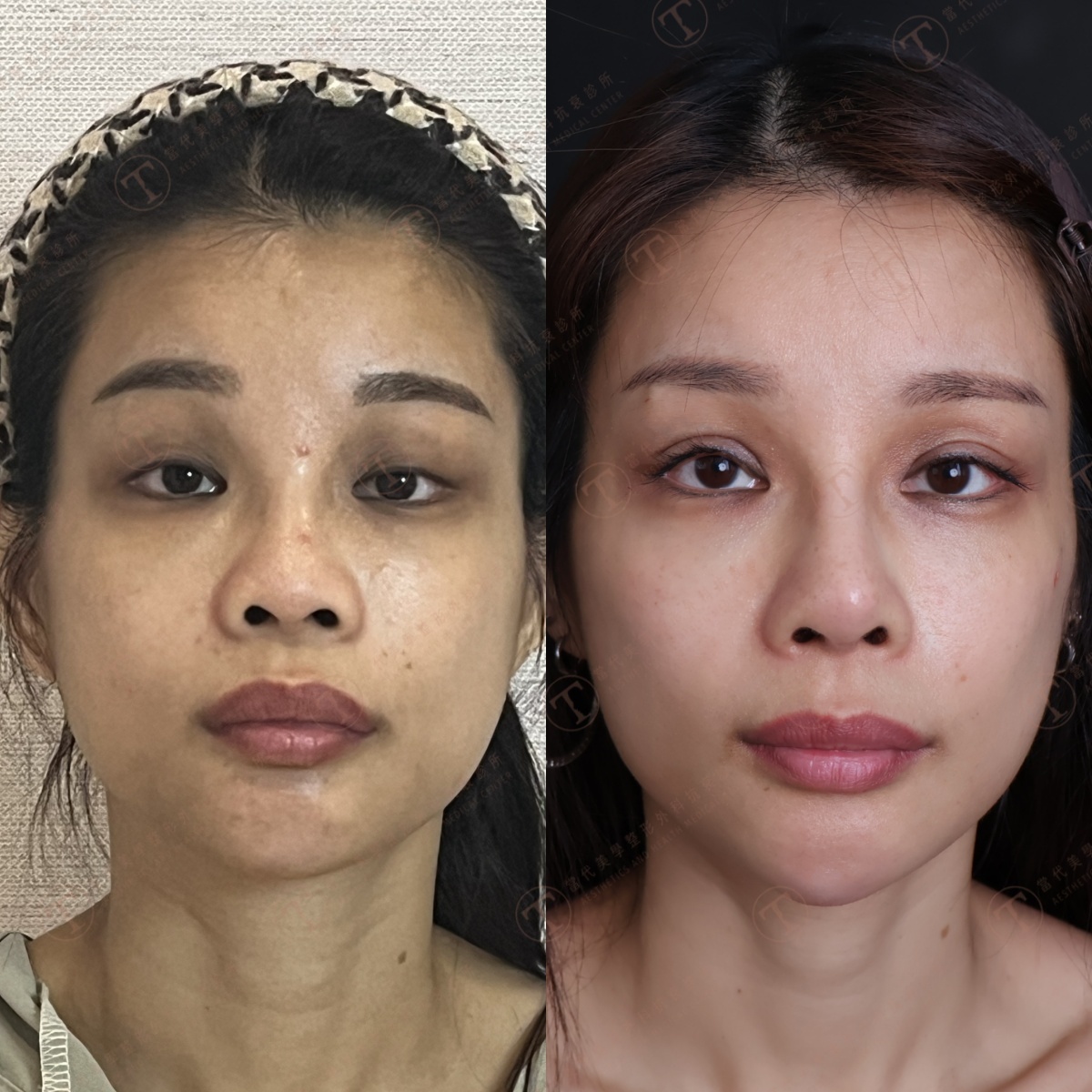 結構式隆鼻、自體肋骨、半自肋該怎麼選?一次看懂費用、材質、醫師差異,找到最適合你的隆鼻方式! / 最新消息, 鼻整形 / 作者: 鄭立言醫師 為什麼選擇「結構式隆鼻」? 結構式隆鼻的核心在於「從鼻子的支架做起」,不同於傳統只墊高山根,它會同時重建鼻樑、鼻頭與鼻中隔的支撐架構,讓整體鼻型更穩固自然、不易位移攣縮。搭配自體軟骨或半自肋材料使用,能進一步強化鼻部結構,降低長期變形或異物感的風險,對於追求自然感、或有二次隆鼻需求者,結構式隆鼻是目前安全性與穩定性最高的隆鼻方式之一,且較能大幅度調整鼻型。 結構式隆鼻適合對象 ✔️ 鼻型條件不佳者(如蒜頭鼻、朝天鼻、扁平鼻)✔️ 曾隆鼻失敗或攣縮變形者,需進行龍鼻重修者✔️ 鼻頭無支撐感、鼻中隔偏曲影響外型與功能✔️ 希望鼻型自然不死板,追求五官整體協調感者✔️ 重視長期穩定性與材質安全性者 隆鼻材質比較表 市面上常見的隆鼻材質包含矽膠、Gore-Tex、卡麥拉、半自肋與自體肋骨,每種材質在穩定度、自然度、適合對象與價格上都略有不同。挑選時,需考量自身鼻型條件、皮膚厚薄、是否為重修手術,以及對自然感與長期穩定性的需求。以下比較表,讓你一次看懂優缺點,選擇最適合你的理想材質與隆鼻方式! 不確定適合哪種,立即預約評估 隆鼻手術費用 隆鼻費用會根據使用材質、手術難度、醫師資歷以及是否為重修手術而有所不同。以下是常見項目的費用比較:一段式隆鼻(傳統式):5-6萬二段式隆鼻:8-10萬三段式隆鼻:18-30萬 隆鼻項目費用區間矽膠隆鼻約 $70,000-$90,000Gortex+半自肋結構式隆鼻約 $180,000-$240,000自體肋骨結構式隆鼻約 $200,000-$280,000隆鼻重修手術約 $220,000- 隆鼻醫師推薦|整形外科 鄭立言醫師 韓國Hanabi診所鼻整形研究醫師韓國高階隆鼻研習營研究醫師 當代美學診所 原廠認證材質使用|全程專業團隊陪伴 將醫學中心的手術房規模完整複製到診所,是當代美學診所的堅持。每一台鼻整形手術都採用全身麻醉,由擁有國家認定麻醉專科執照的麻醉科醫師在手術房全程一對一進行麻醉安全的守護。手術室採用醫學中心等級標準麻醉醫師全程陪同,降低術中風險 隆鼻案例分享 Goretex+半自肋結構式隆鼻+敲鼻骨 鼻背挺度一直不是非常滿意,更希望鼻子在更精緻秀氣,透過Goretex+半自肋結構式隆鼻+敲鼻骨來調整鼻型。鼻樑使用一體成形的美國Gortex假體,需要非常有經驗的雕刻功力,才能讓鼻樑寬度以及銜接上方額頭下方鼻頭的整體弧線自然流暢。鼻頭部分以及鼻小柱部分都是使用自體肋軟骨來完成延長塑形,如此一來可以增加鼻頭支撐性也可以打造鼻頭精緻感。 Goretex+半自肋結構式隆鼻 鼻背挺度與鼻翼寬度是她最在乎的點,希望鼻翼可以再窄一點,經過醫師專業評估,透過Goretex+半自肋結構式隆鼻,可以達到理想鼻型。鼻樑使用一體成形的美國Gortex假體,穩定性高、攣縮率低,在自然度表現上也很優異。鼻頭部分以及鼻小柱部分都是使用自體肋軟骨來做延展,鼻小柱延伸了,鼻翼也會被撐起來,看起來視覺上鼻翼寬度就窄了。 Goretex+半自肋結構式隆鼻 山根不夠挺,讓五官看起來不夠立體,經過醫師專業評估,男性的鼻子除了堅挺也要擁有秀氣精緻的感覺,透過Goretex+半自肋結構式隆鼻,可以達到理想鼻型。鼻樑使用一體成形的美國Gortex假體,穩定性高、攣縮率低、安全。鼻頭部分以及鼻小柱部分都是使用自體肋軟骨來做延展,鼻小柱延伸了,鼻孔也就自然呈現水滴狀。 立即諮詢 隆鼻手術常見問題 1. 新手建議從哪種隆鼻方式開始? 條件良好的初次隆鼻可選半自肋與Goretex,若有攣縮或重修建議自體肋骨,不過實際還是由醫師進行專業評估最好。 2. 隆鼻會影響嗅覺嗎? 不會,隆鼻手術位置為鼻子皮膚及鼻內黏膜的組織層,不會影響嗅覺神經及破壞鼻黏膜結構,因此不會影響嗅覺和造成呼吸不適的問題。 3. 隆鼻手術的恢復期需要多久? 老實說恢復狀況因人而異,普遍來說,大概手術後第二天晚上到第三天最腫,大概2周左右會消8成,一個月左右大概就可以消腫的差不多,約三個月恢復自然樣態。但是要整個完全皮膚的回縮和定型,大概要半年左右。 4. 隆鼻取耳軟骨的話,耳朵會變形嗎? 一般我們取耳軟骨的方式,不會破壞到主要的結構只會拿靠內側,比較深的底部的地方基本的架構都還在,所以其實是不會造成耳朵的變形其實取的過程也是非常簡單,而且術後的疤痕其實也隱藏的非常好。 改變鼻子的大小、挺度都能改變臉的比例與協調感,不要一味追求高挺,應該綜合全臉的比例進行量身訂做,鄭立言醫師推薦可以先到診所模擬,有時候鼻子看起來不夠精緻不一定是鼻樑不夠挺,有時候是鼻骨太寬,在全臉的比例上鼻子就顯得比較大、不夠精緻,這時候如果一味的把鼻樑墊高會非常不協調,可以透過鼻骨內推、縮鼻翼、 微調鼻頭就能形塑很精緻的鼻子,因此要找有隆鼻經驗的醫師,鄭立言醫師遠赴韓國Hanabi診所進修學習,對於初鼻、重修鼻等困難鼻型都能做到自然仿真、穩固、弧線優雅。 加入LINE|快速諮詢