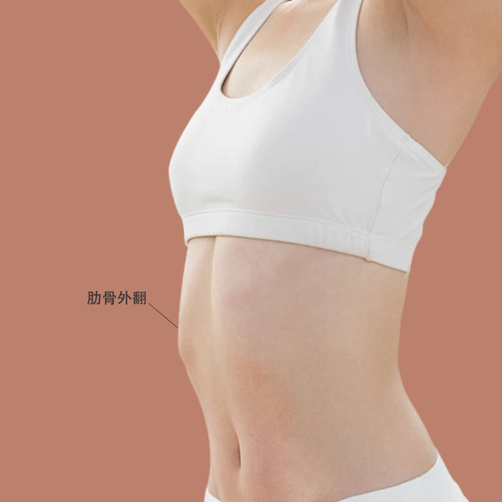 所謂「肋骨外翻」(Rib Flare),指的是下肋骨向外張開的狀態。這種情況大致可分為兩種類型: